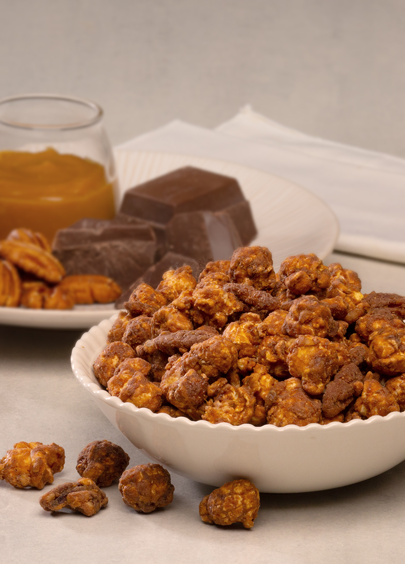 Rich, chocolatey CaramelCrisp with roasted pecans for a decadent twist on a timeless treat. The buttery crunch of pecans, handcrafted caramel and milk chocolate coating creates a perfectly balanced indulgence in every bite.
