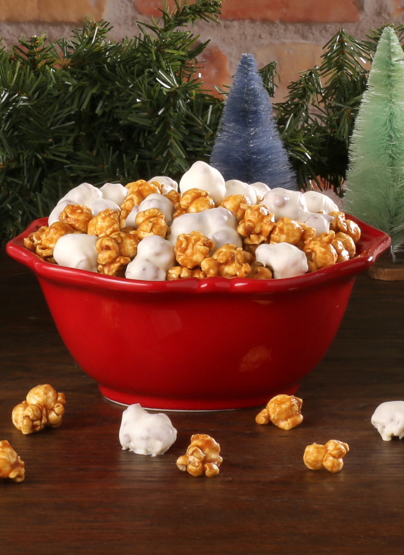This limited-batch recipe is sure to bring joy to your holiday snack sessions. White chocolate decadently coats our cocoa CaramelCrisp and is then mixed with our classic CaramelCrisp. Perfect for all festive occasions!