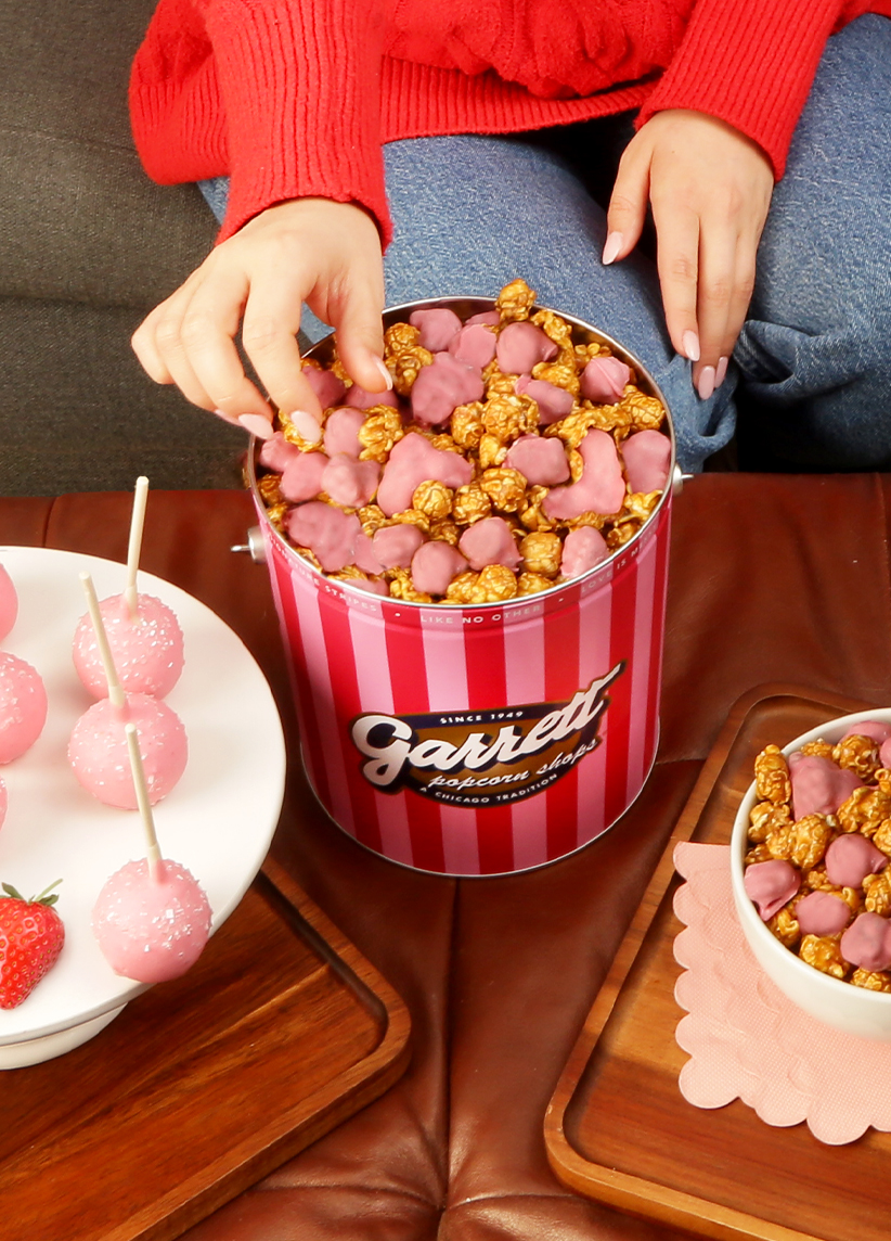 Upgrade your gift with our special Valentine's Day lid decal! Select Garrett Mix or our seasonal White Chocolate Strawberry recipe.